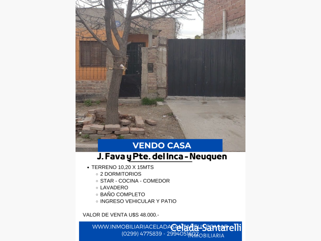 - Descripción: Vendo CASA - Ubicada en calle J. Fava y Pte. Del Inca - Neuquén Capital
